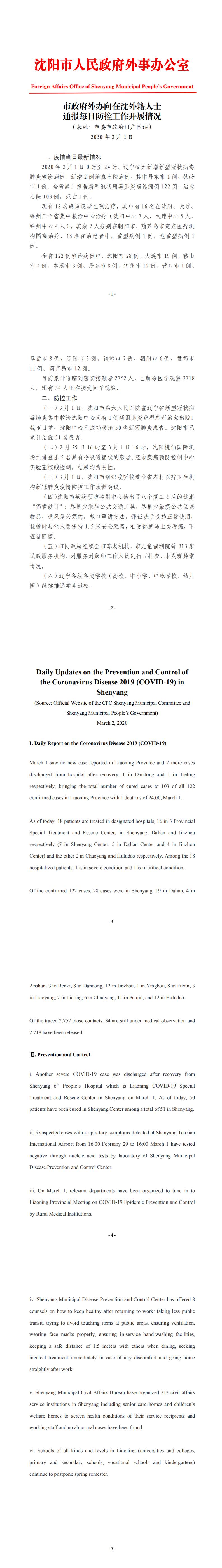 3月2日市政府外办向在沈外籍人士通报每日防控工作开展情况
