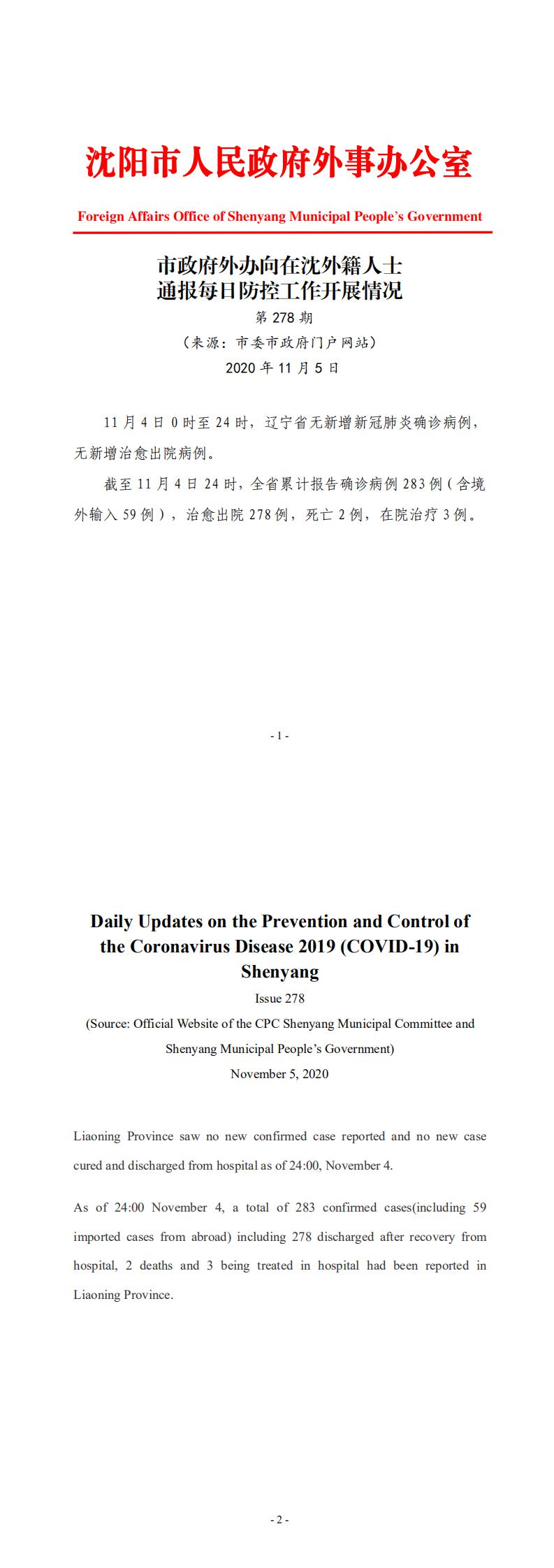 11月5日市政府外办向在沈外籍人士通报每日防控工作开展情况