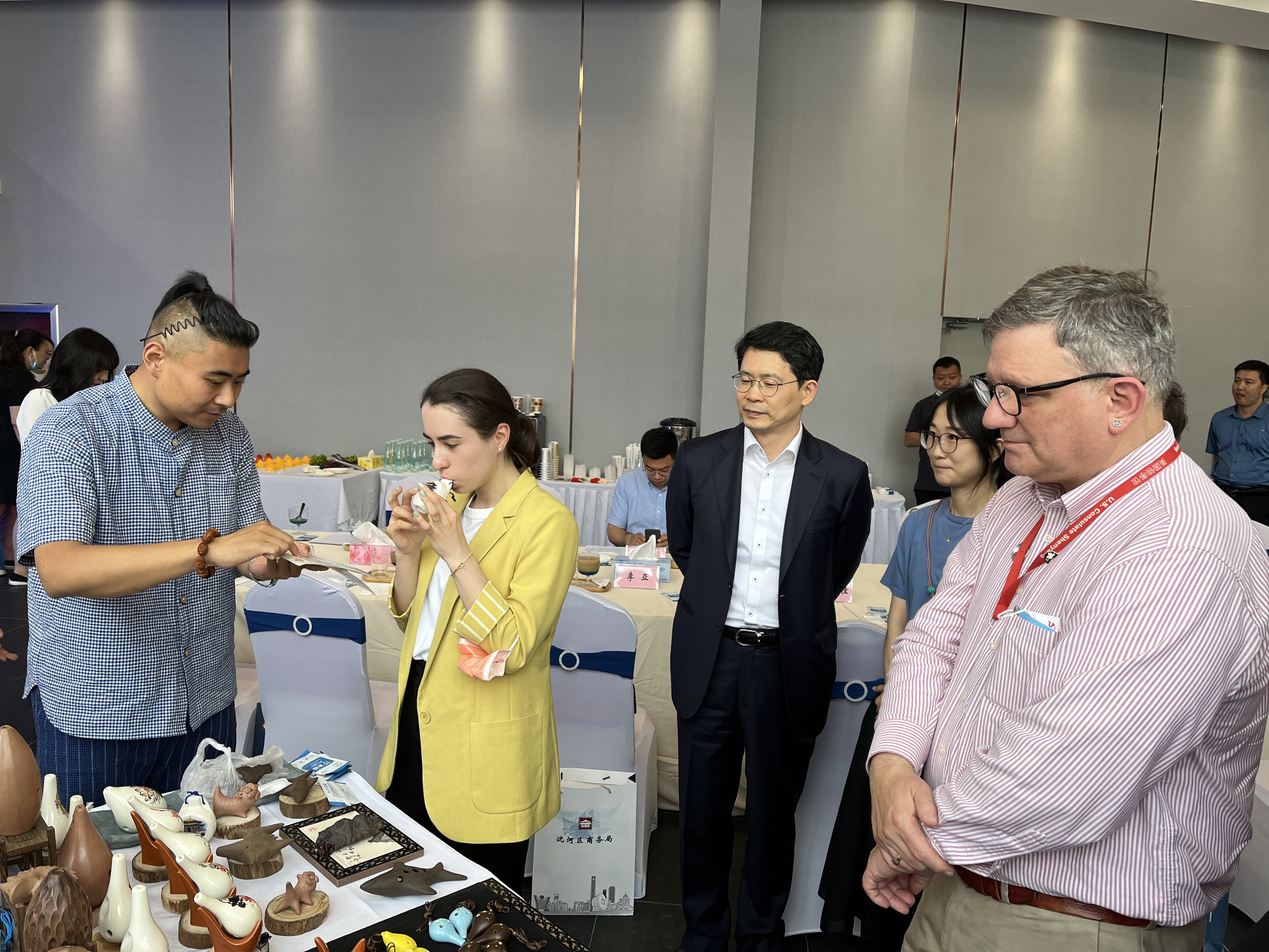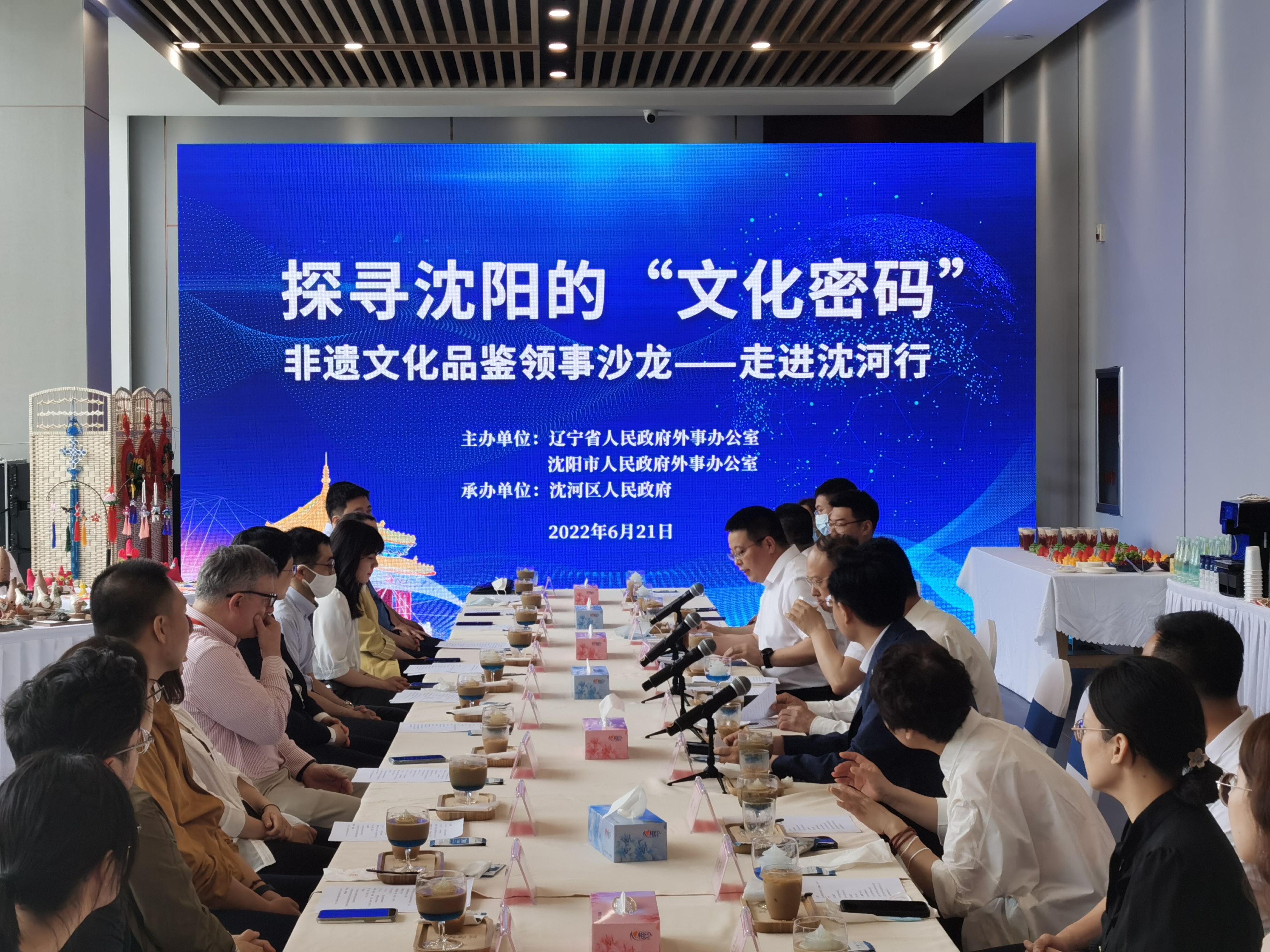 6月21日,由辽宁省政府外办和沈阳市政府外办主办、沈河区政府承办的“非物质文化遗产品鉴领事沙龙”在沈阳博物馆举行,美国、韩国、日本、朝鲜、俄罗斯、澳大利亚等国驻沈阳总领事馆领事官员出席活动。