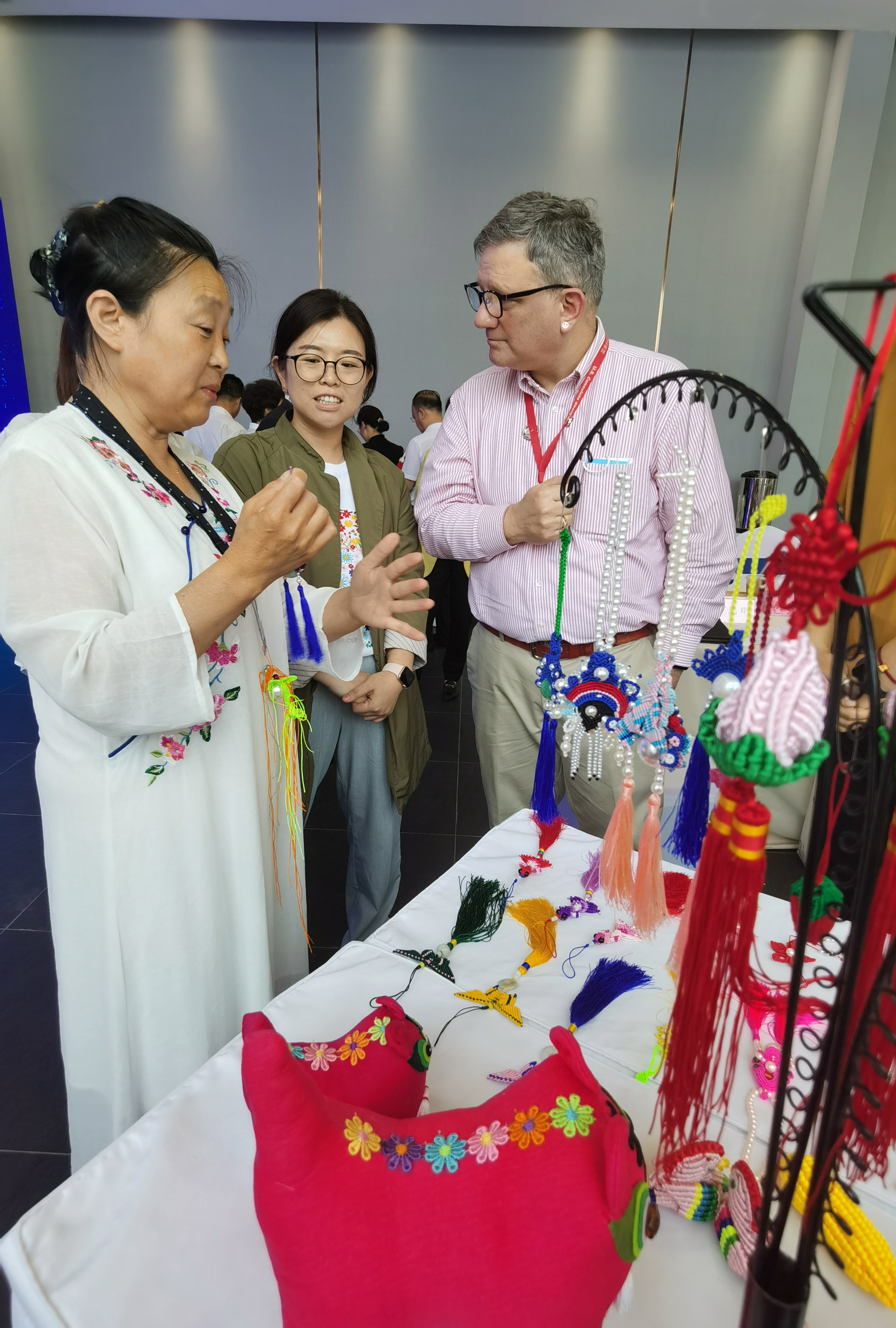 在活动现场,沈阳非物质文化遗产传承人进行了陶埙制作演奏和中国结编织等技艺表演,展示了独特的东方神韵和东方智慧,领事官员们在非遗传承人的指导下亲自体验陶埙演奏,亲手编织中国结。领事官员们还参观了沈阳故宫博物院,游历大政殿、崇政殿、十王亭、文溯阁等古建筑,观看了“宫苑佳器焕彩凝祥——沈阳故宫藏清宫珐琅器展”“大器精工——沈阳故宫藏清代宫廷家具展”,实地感受沈阳独特的文化魅力和历史底蕴。
