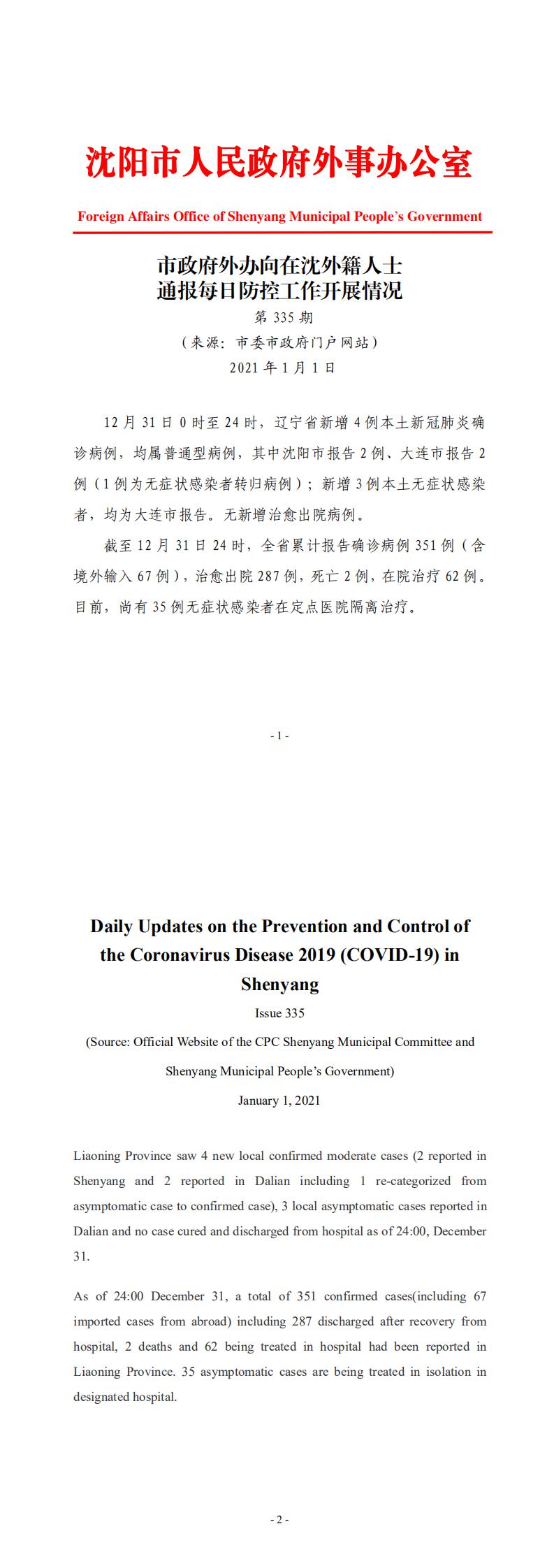 1月1日市政府外办向在沈外籍人士通报每日防控工作开展情况