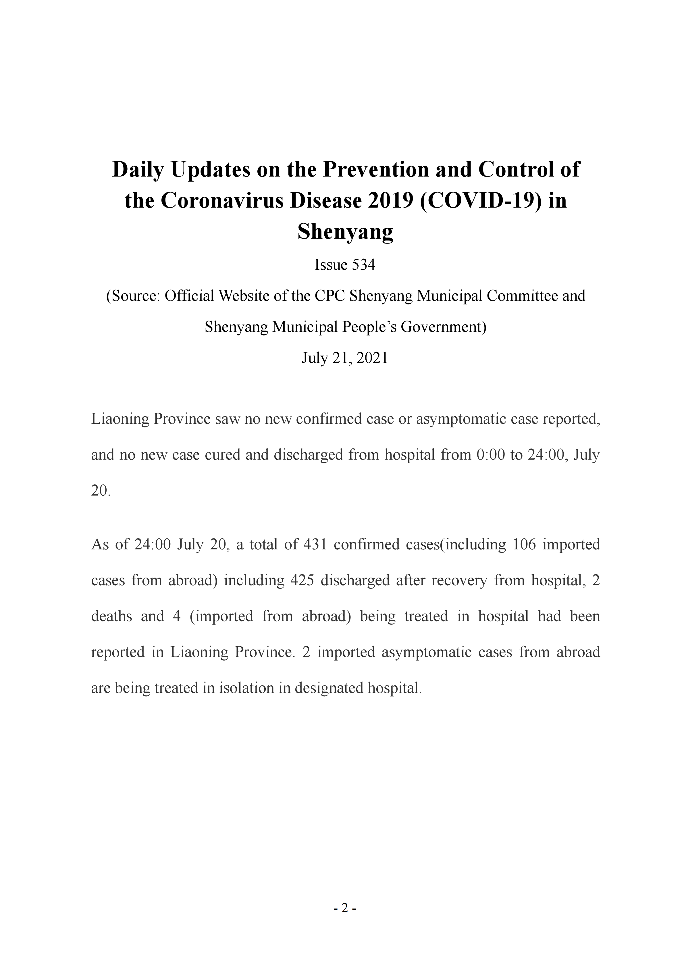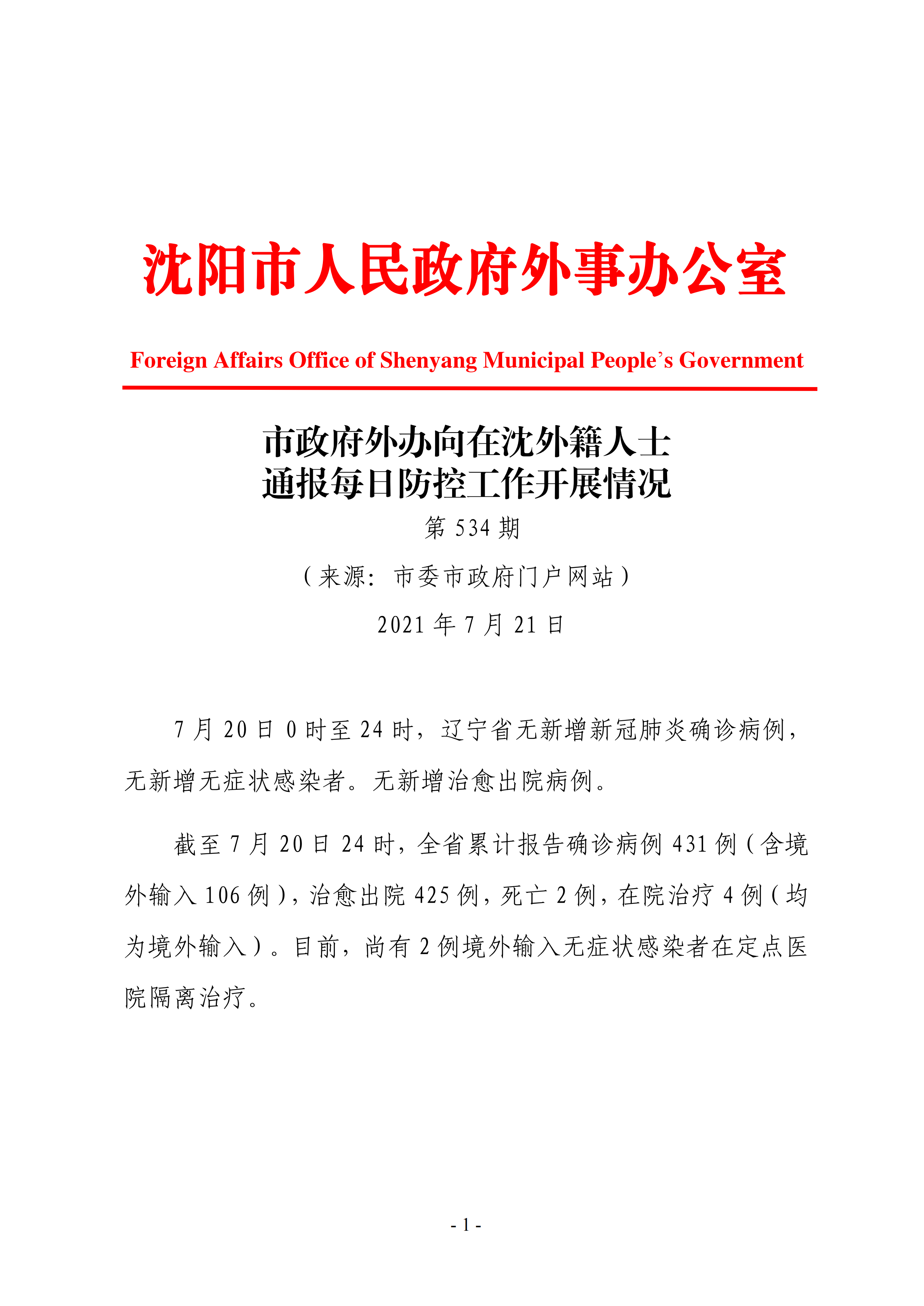 7月21日市政府外办向在沈外籍人士通报每日防控工作开展情况
