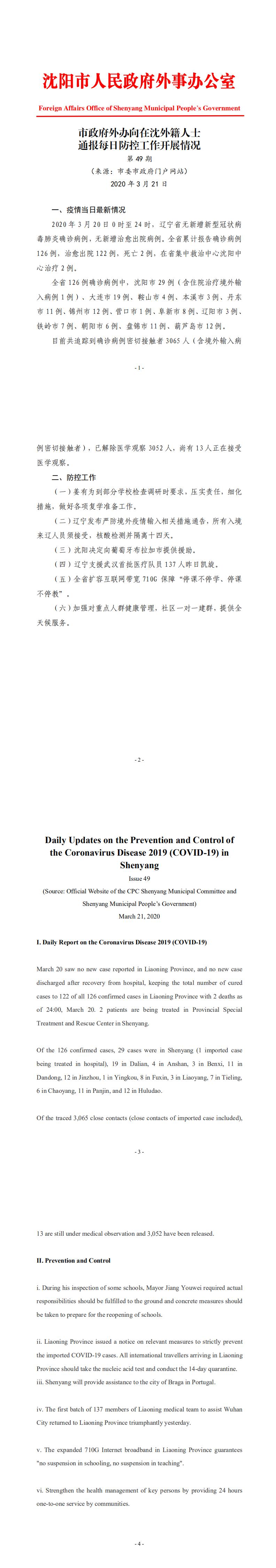 3月21日市政府外办向在沈外籍人士通报每日防控工作开展情况