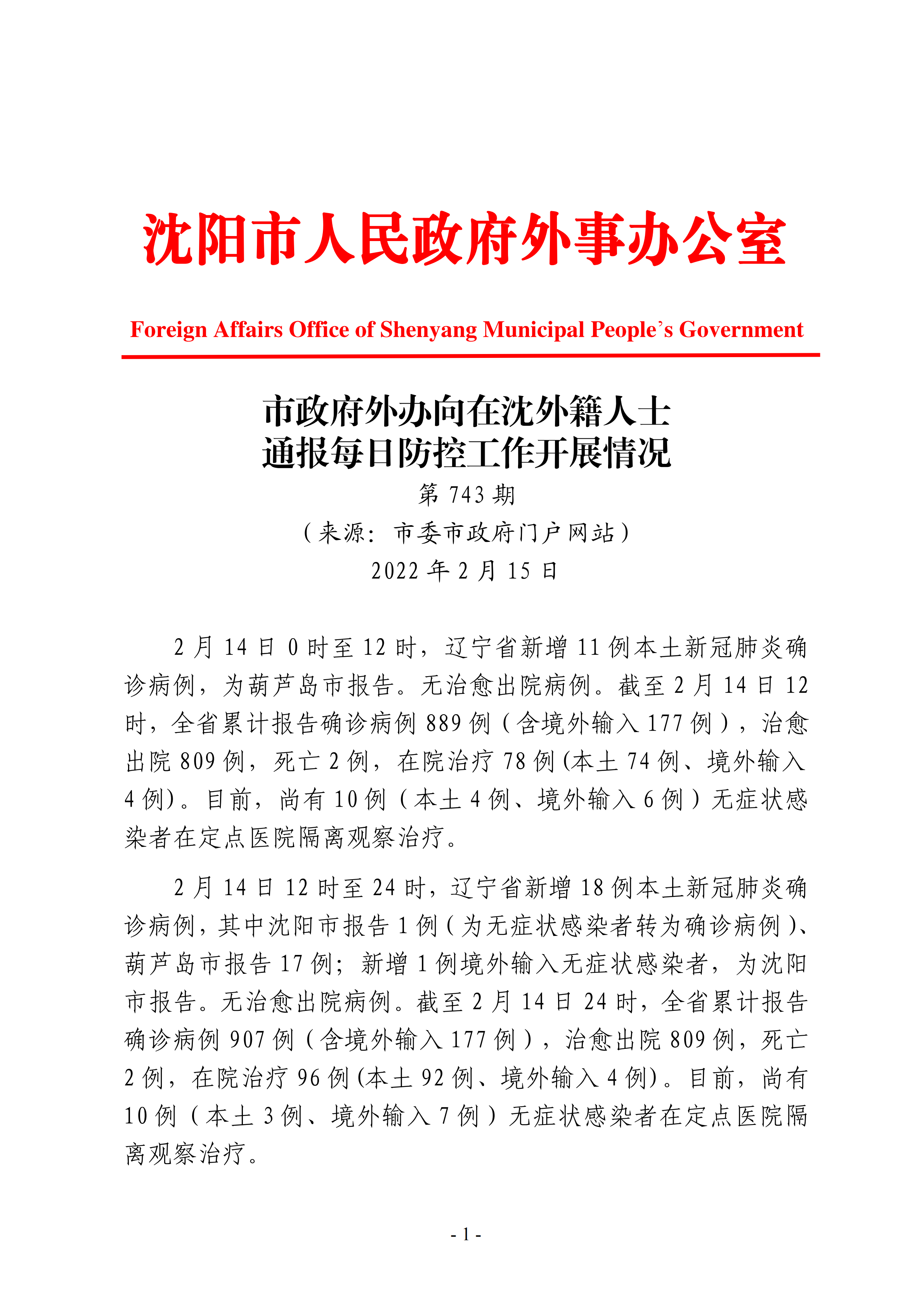 2月15日市政府外办向在沈外籍人士通报每日防控工作开展情况