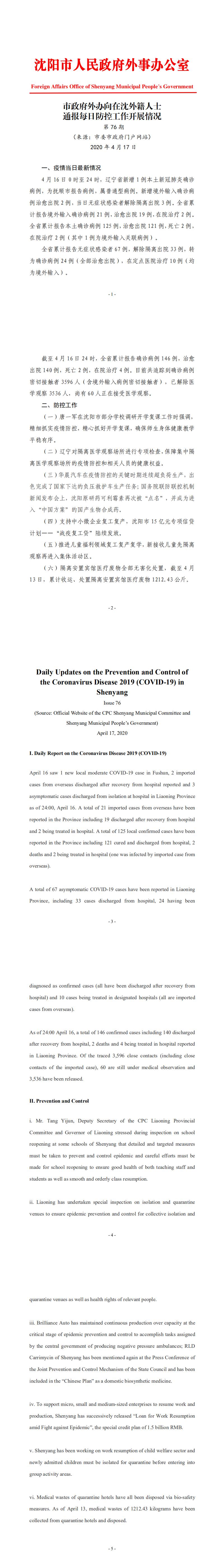 4月17日市政府外办向在沈外籍人士通报每日防控工作开展情况