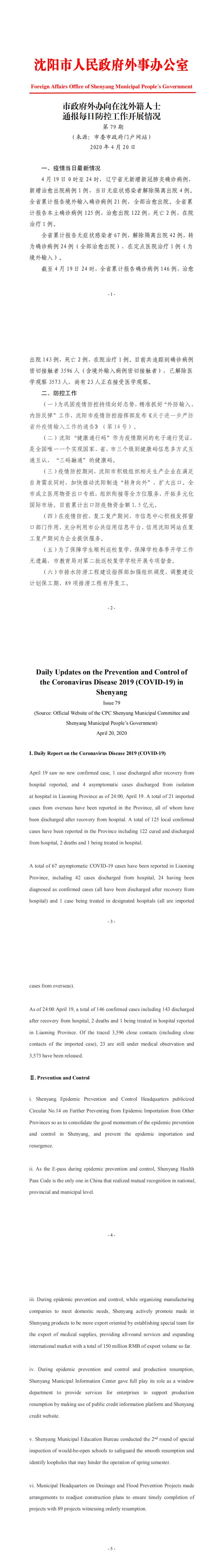 4月20日市政府外办向在沈外籍人士通报每日防控工作开展情况