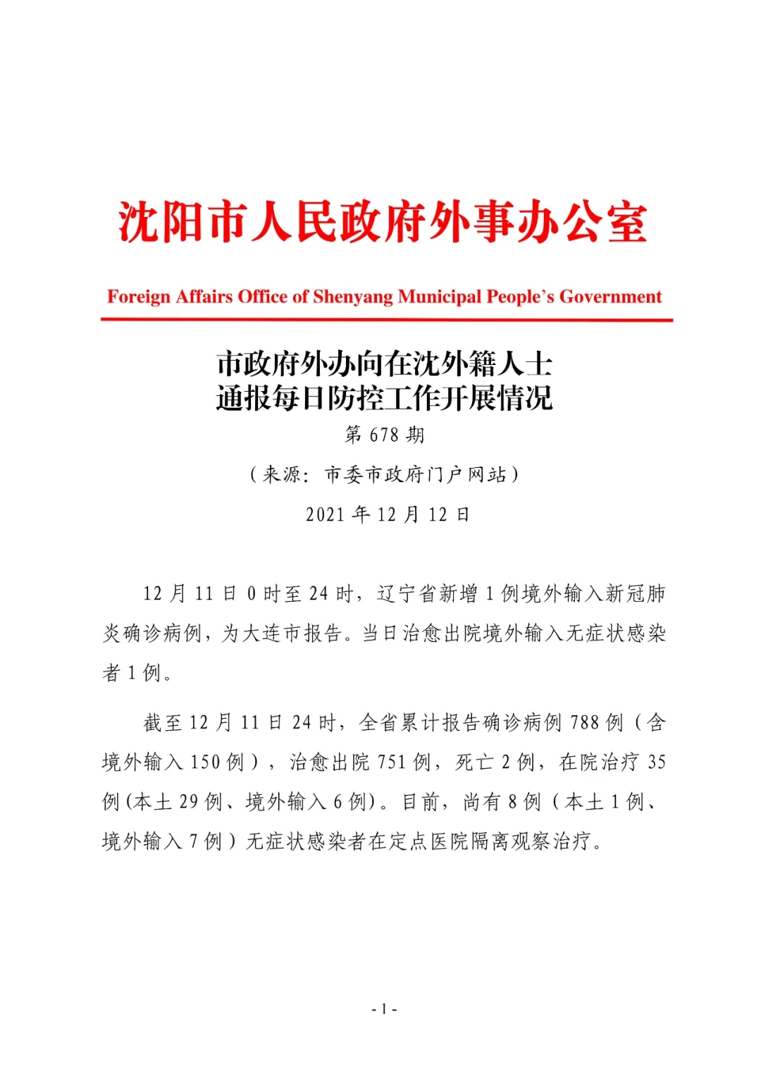 12月12日市政府外办向在沈外籍人士通报每日防控工作开展情况