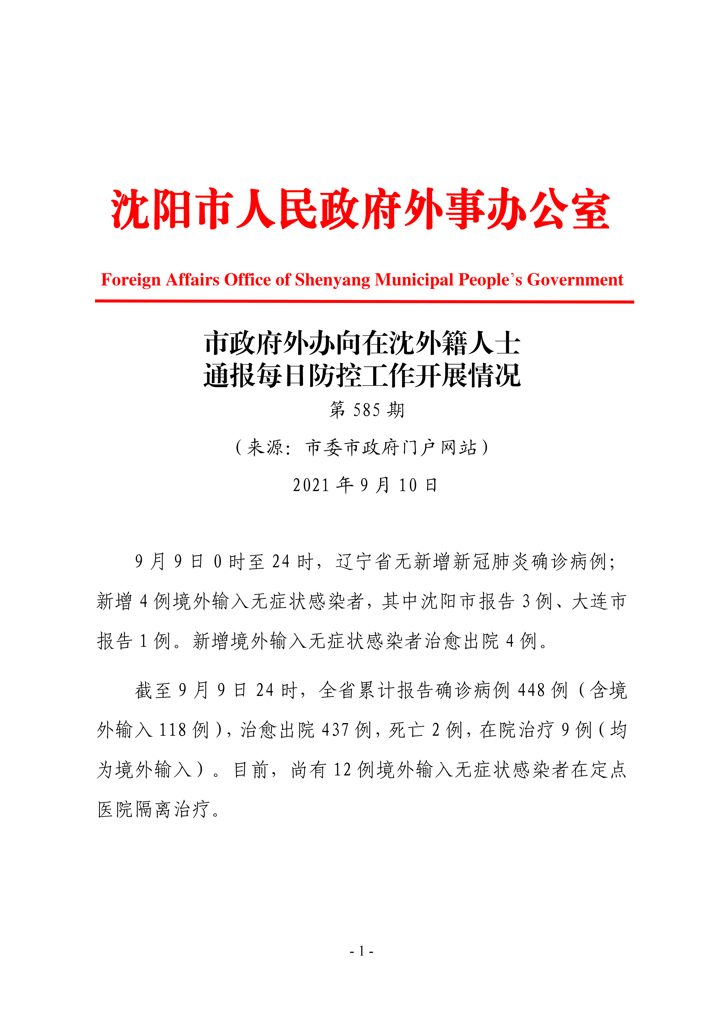 9月10日市政府外办向在沈外籍人士通报每日防控工作开展情况