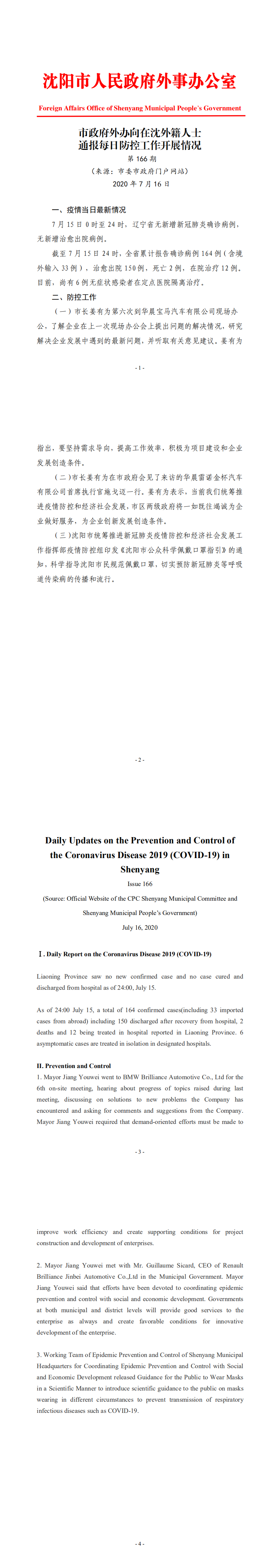 7月16日市政府外办向在沈外籍人士通报每日防控工作开展情况