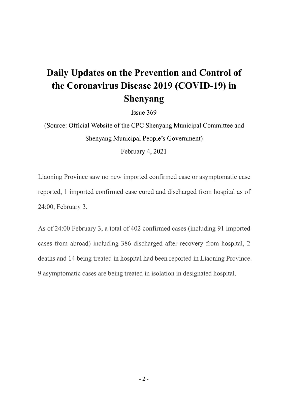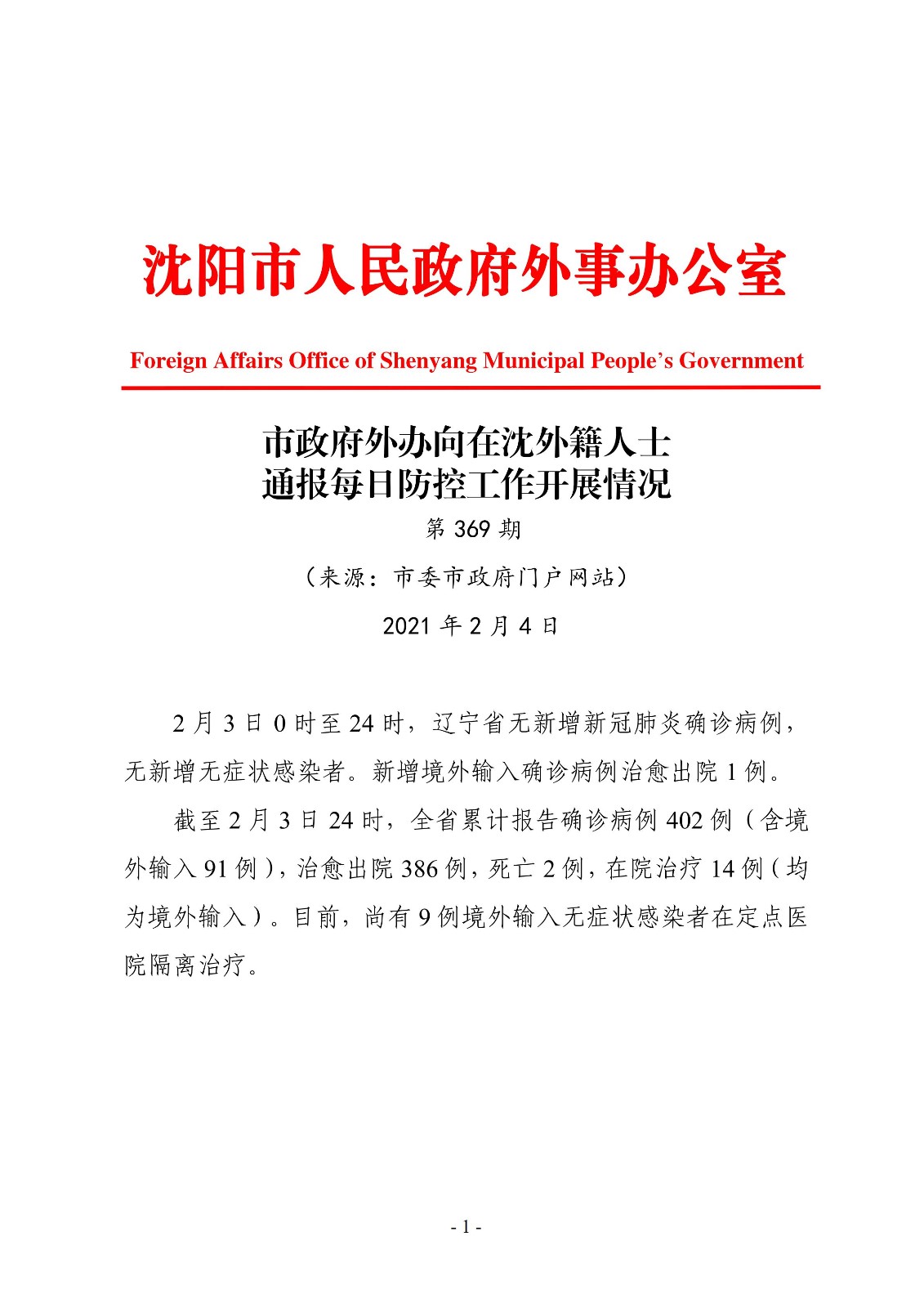 2月4日市政府外办向在沈外籍人士通报每日防控工作开展情况