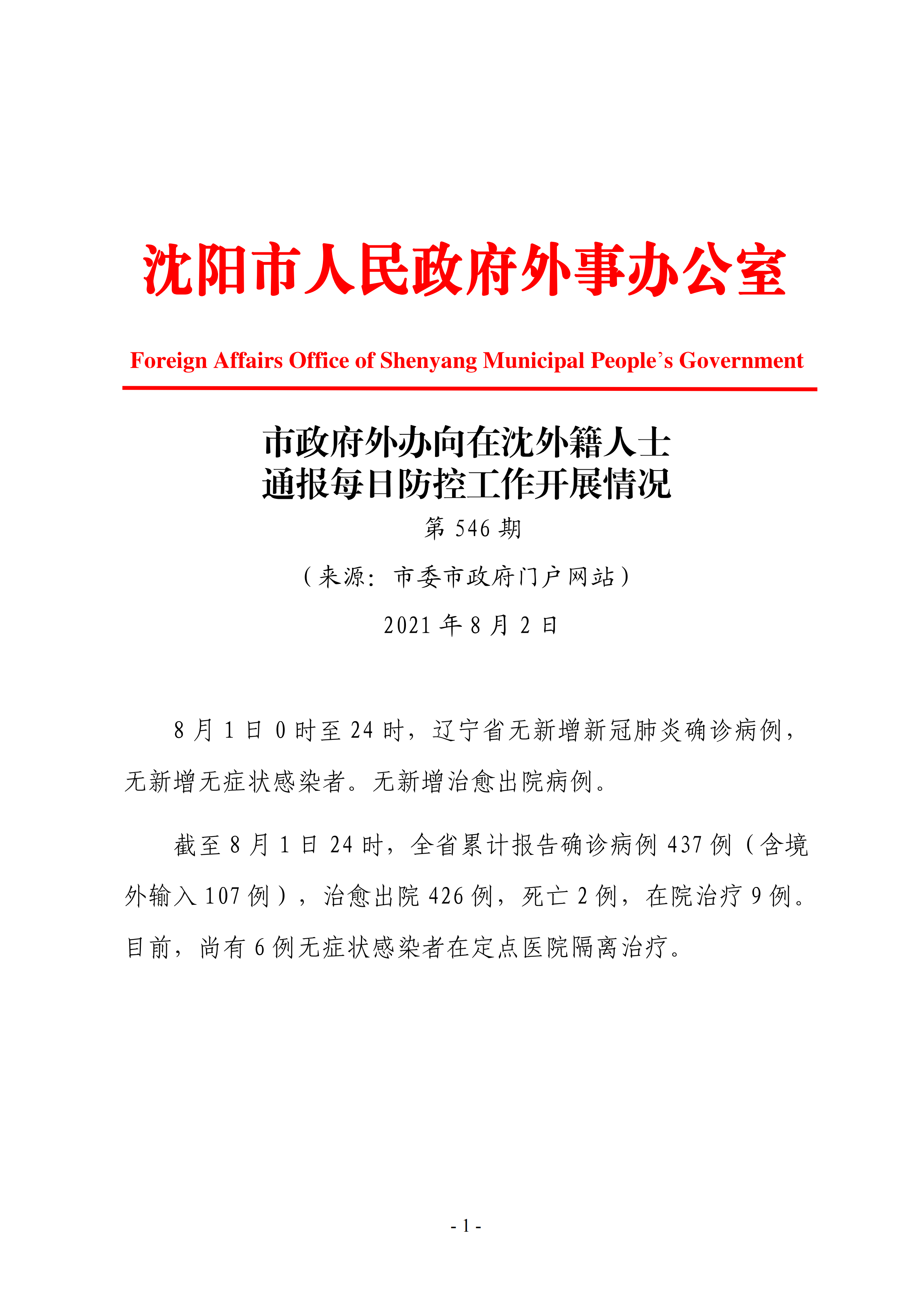 8月2日市政府外办向在沈外籍人士通报每日防控工作开展情况