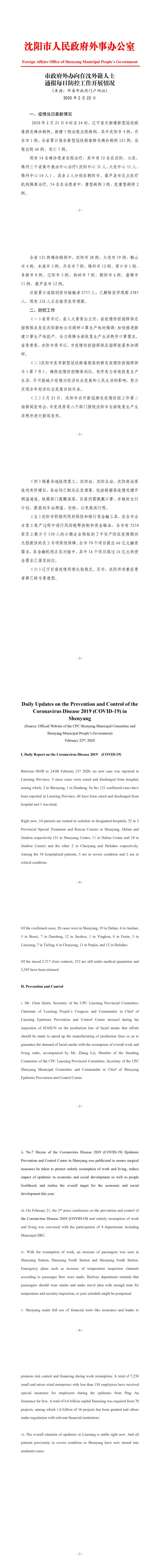 2月22日市政府外办向在沈外籍人士通报每日防控工作开展情况