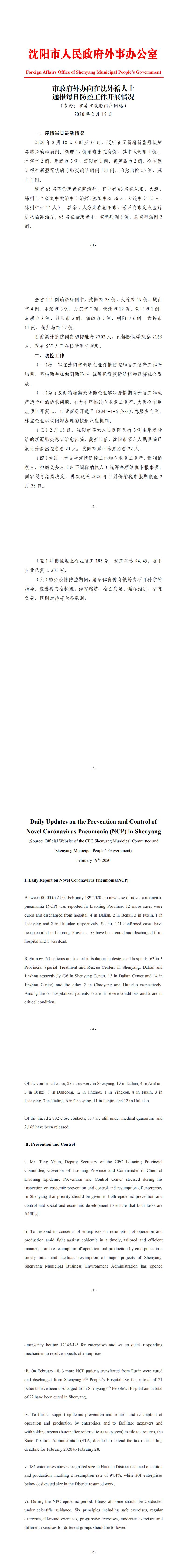 2月19日市政府外办向在沈外籍人士通报每日防控工作开展情况