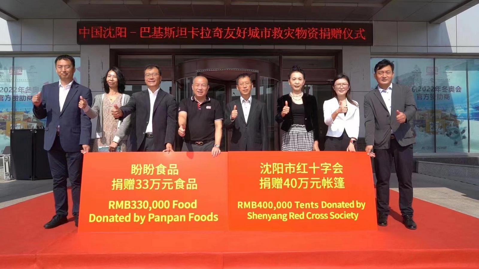 On September 28, 2022, Foreign Affairs Office of Shenyang Municipal Government and Shenyang People's Association for Friendship with Foreign Countries held a donation ceremony of disaster relief materials for Shenyang’s sister city Karachi in Shenyang Xinmin Fuyuan Foods Co., Ltd. At the donation ceremony, the Municipal Red Cross Society and Panpan Foods Co., Ltd. handed over donated items to Liaoning People’s Association for Friendship with Foreign countries, including tents worth RMB 400,000 donated by the municipal Red Cross Society and food worth more than RMB 300,000 donated by Panpan Foods Co., Ltd. These aid items will be transported to Karachi through the Pakistani Embassy in China.