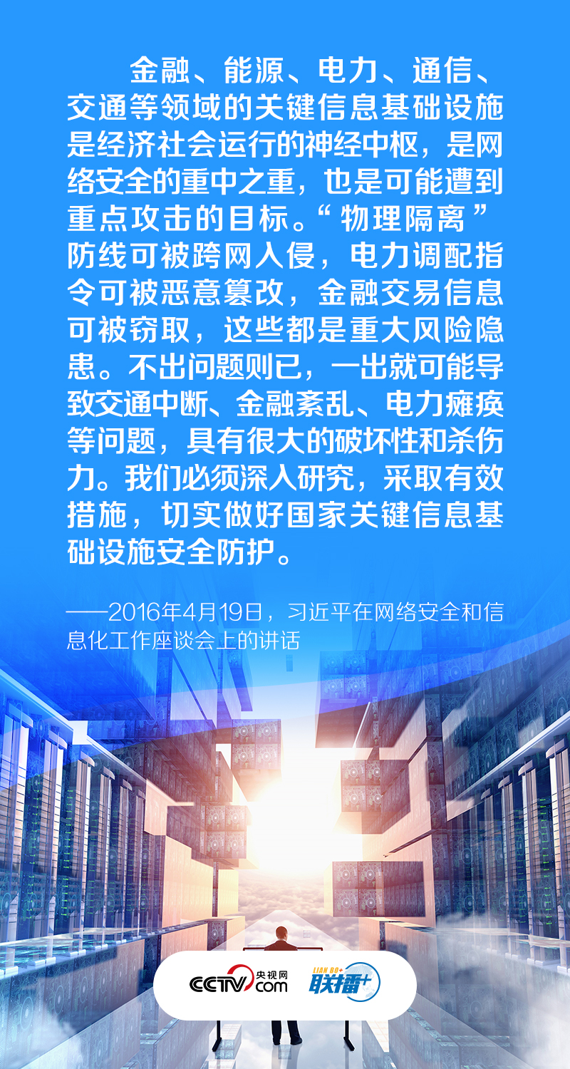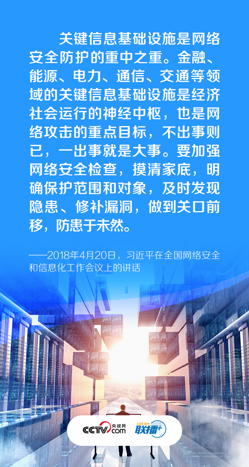 “金融、能源、电力、通信、交通等领域的关键信息基础设施是经济社会运行的神经中枢,是网络安全的重中之重,也是可能遭到重点攻击的目标。”习近平总书记强调,关键信息基础设施是网络安全防护的重中之重,“我们必须深入研究,采取有效措施,切实做好国家关键信息基础设施安全防护”。